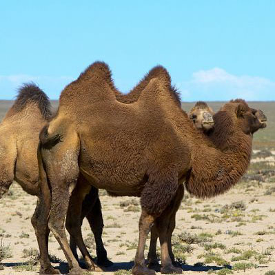 駱駝分為單峰駱駝和雙峰駱駝,前者多分布于蘇丹,索馬里等地區(qū),后者則多見于亞洲和較與涼爽的地方。駱駝是一種非常耐饑渴、高溫寒冷,性情溫順的動物,駱駝還具有合群性,種群居住,是以前干旱炎熱的沙漠地區(qū)不可以缺少的交通工具和運(yùn)輸工具,距今已有1千3百萬年的存活歷史。