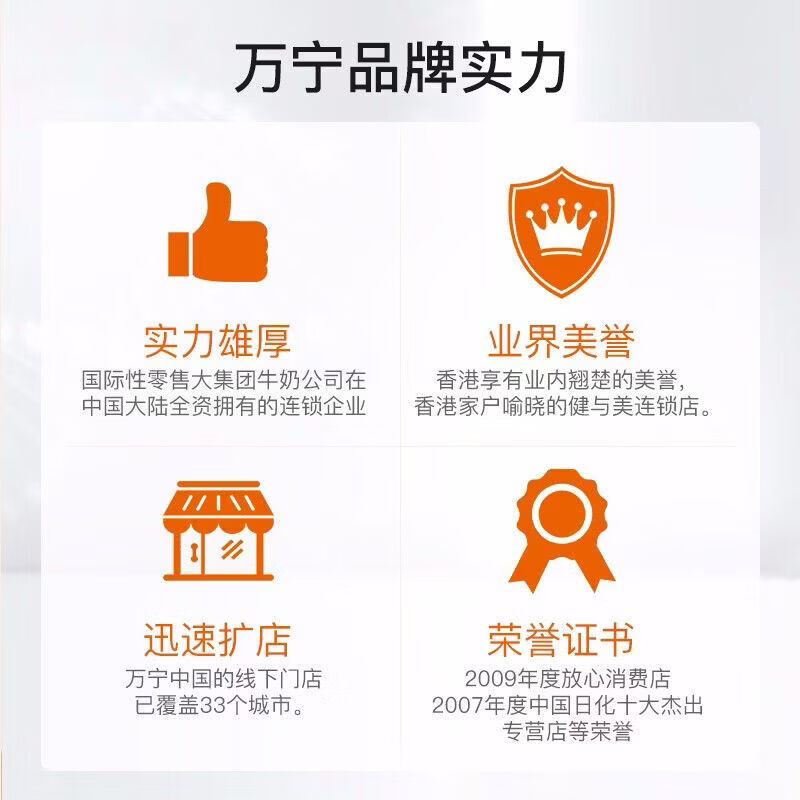 廣東萬寧連鎖商業(yè)有限公司,化妝品連鎖知名品牌,商場知名品牌,亞洲較大零售集團--牛奶國際有限公司旗下品牌,香港首屈一指的美容與健康產(chǎn)品零售連鎖店,在香港享有業(yè)內(nèi)翹楚的美譽,中國最具潛力國際連鎖化妝品專營店之一。